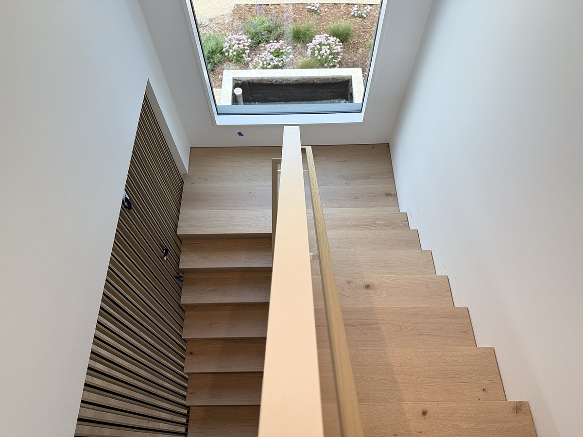 Installation of Mediterranean Floors in Point Reyes This is the Corinthian from Mediterranean Collection, installed in this beautiful home in Point Reyes. The customer also asked for custom waterfall stairs. The final result is stunning.
