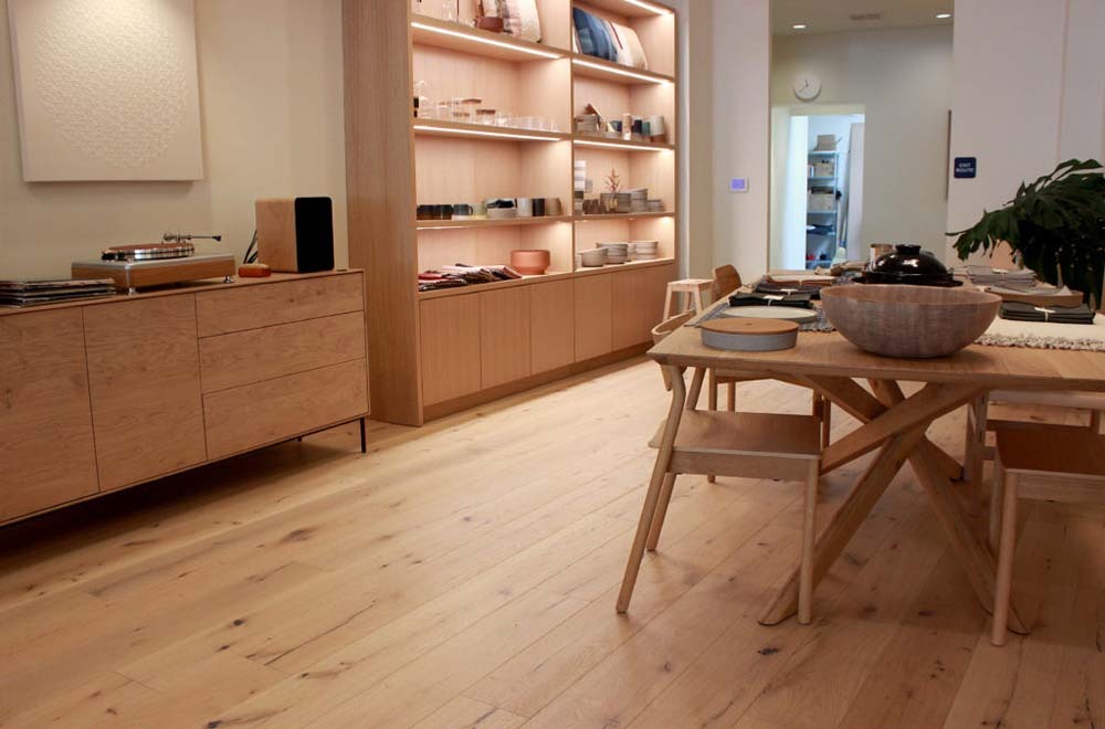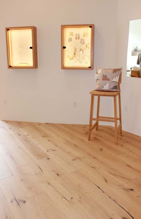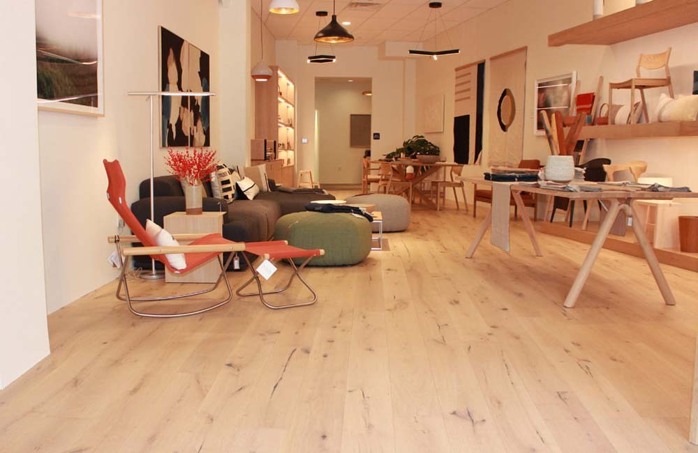 We installed a pre-finished hardwood floor in this beautiful store in downtown Mill Valley. This floor is an engineered European White Oak with light character from Montage, Ferno Collection – Canelli. This floors dimensions are 9/16″ x 7-1/2″ wide planks and are 72″ long.
