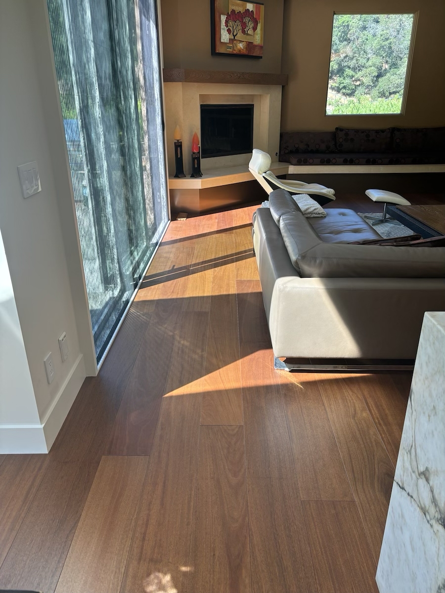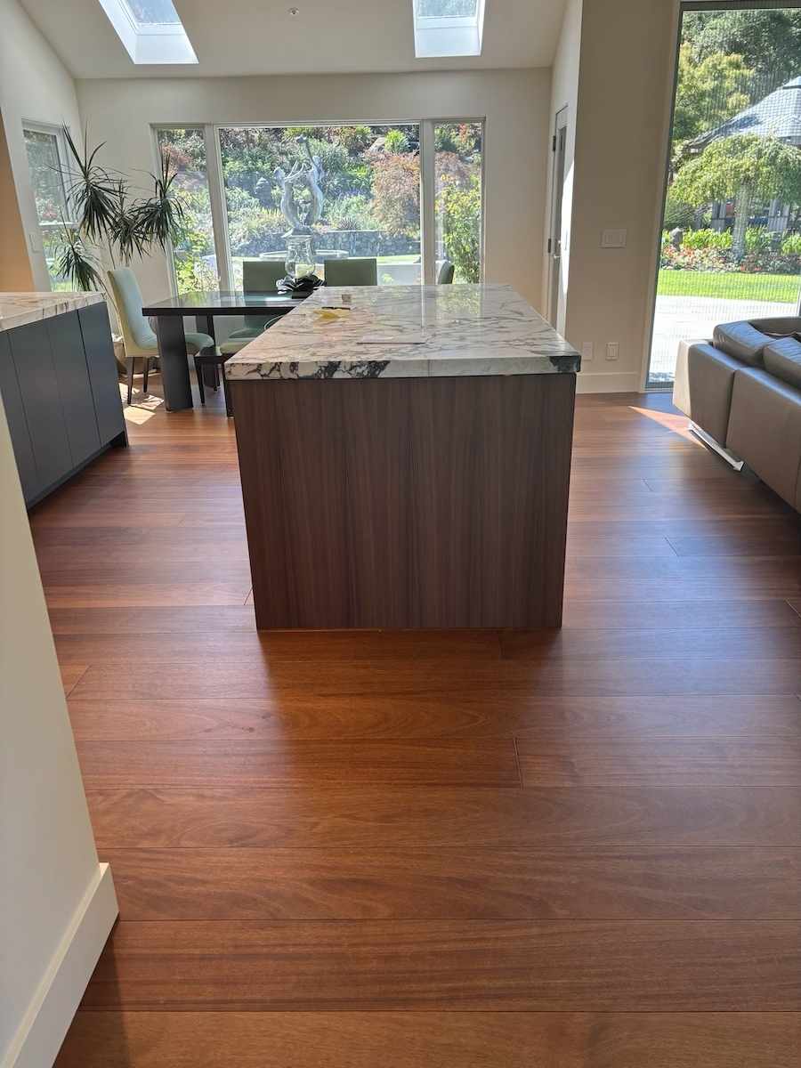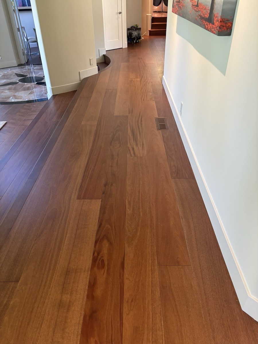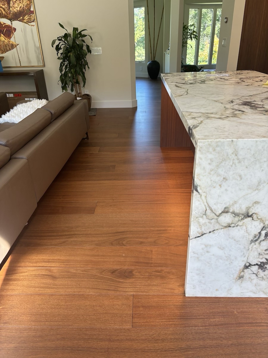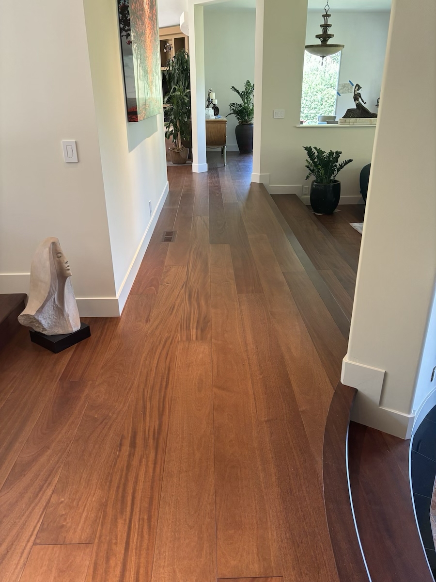Royal Mahogany, Antiroba – Installed and Coated in Novato Residence We installed this stunning Royal Mahogany floor unfinished. Then applied coats of natural finish.