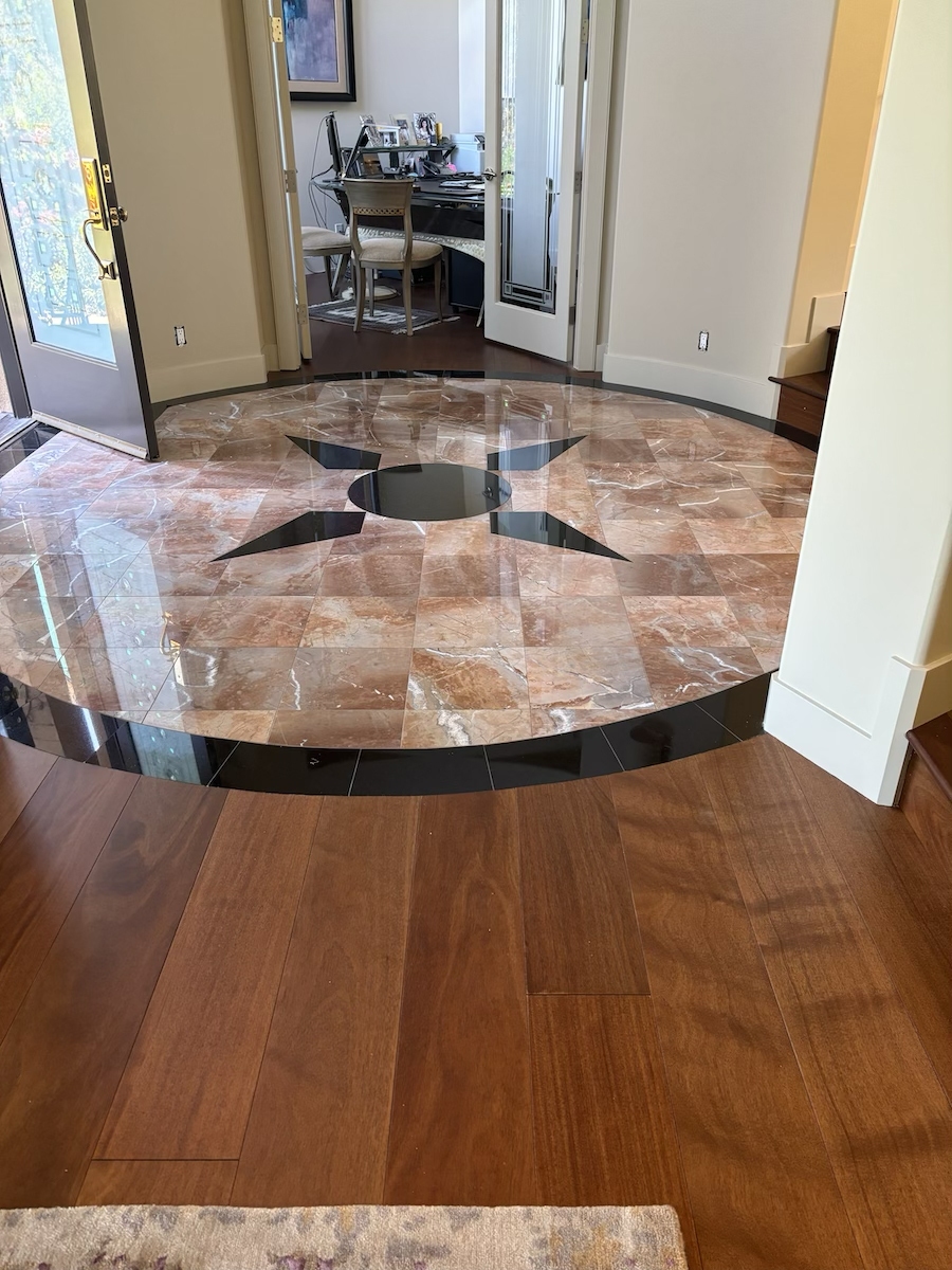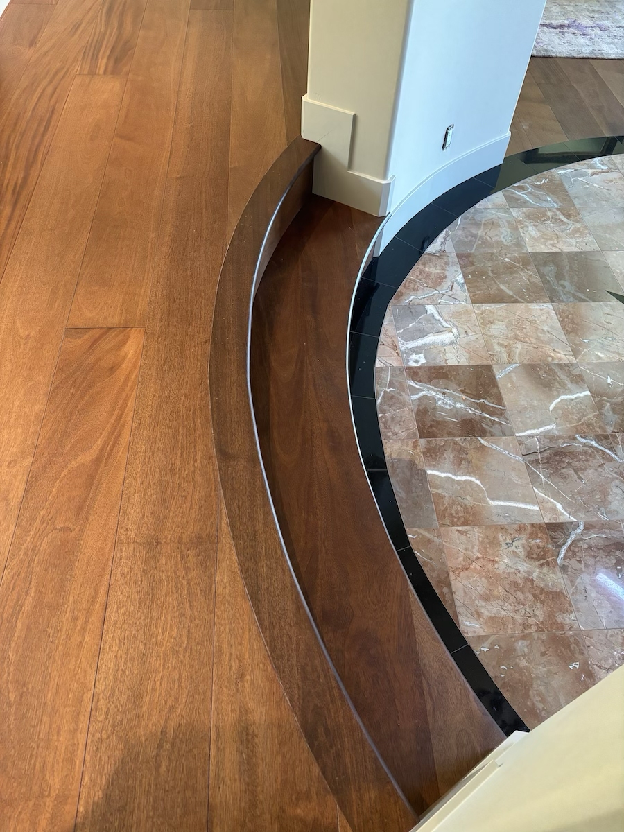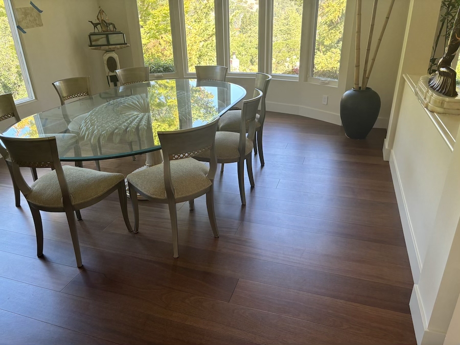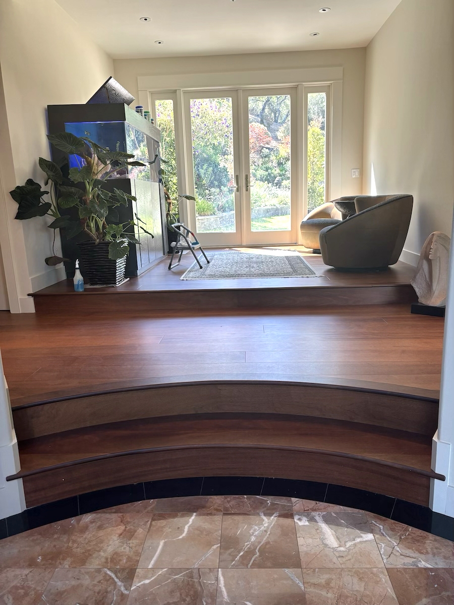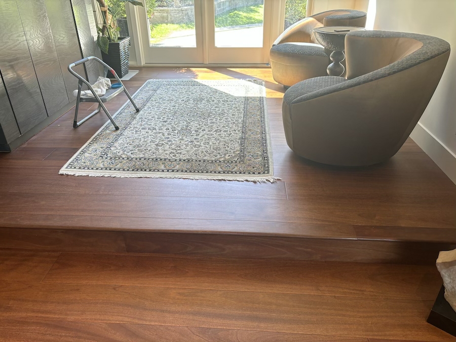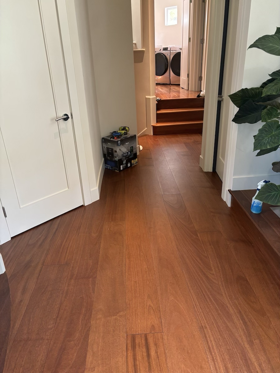 Royal Mahogany, Antiroba – Installed and Coated in Novato Residence We installed this stunning Royal Mahogany floor unfinished. Then applied coats of natural finish.